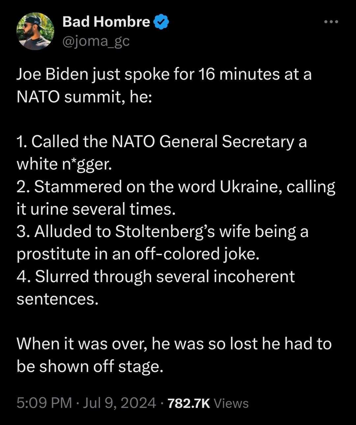 I remain amazed that in the face of the absurdly obvious cratering of the Biden mind that the 25th Am has not been invoked. What a travesty!
