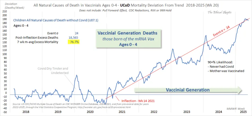 38. 24 sigma event in progress. 77% excess death trend in infants born to vaccinated mothers.