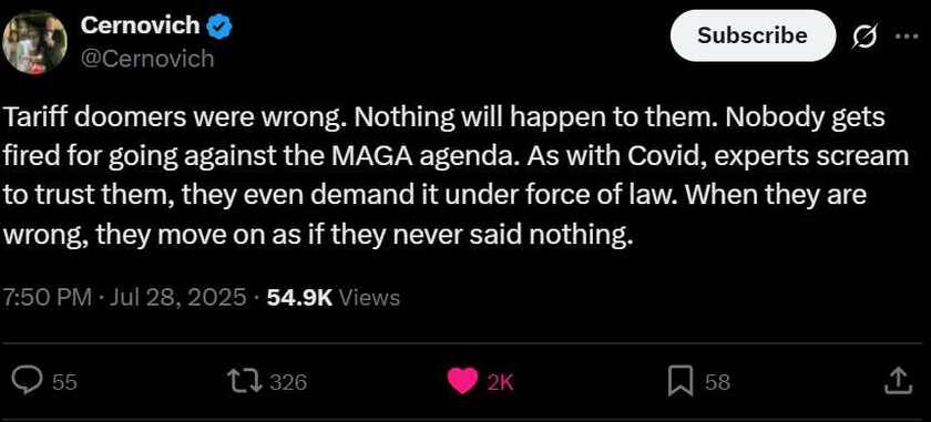 And it sends a clear signal: the era of multilateral consensus is over. Trump may have signed a deal with the EU as a bloc, but he did it by breaking their leverage, not respecting it. He doesn’t negotiate with power structures, he dismantles them, then rewrites the terms, nation to nation, on his own ground.”