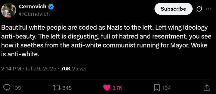 1. I’m laughing non-stop at the DEI meltdowns over this. It’s comedy central. The nazism and fascism comments are so over the top that I’d pay good money to have major spreads of every attractive blonde and brunette in denim plastered all over the cities.
