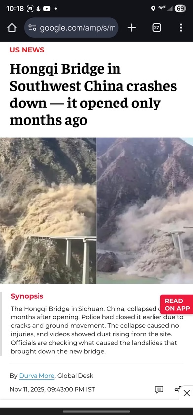 1. I don’t mean to dump on China, but there are many implications of a bridge failure of this nature.