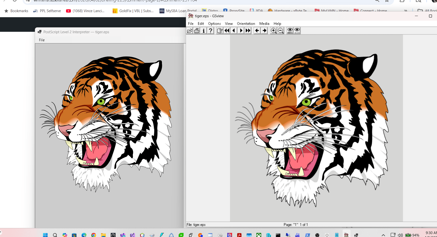 The classic reference example is the Tiger image and it did it flawlessly.
